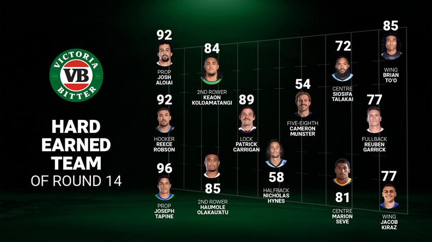 Despite his side going down to the Broncos in Round 14, Raiders forward Joseph Tapine produced a determined performance to top the VB Hard Earned Index for all players in the round.