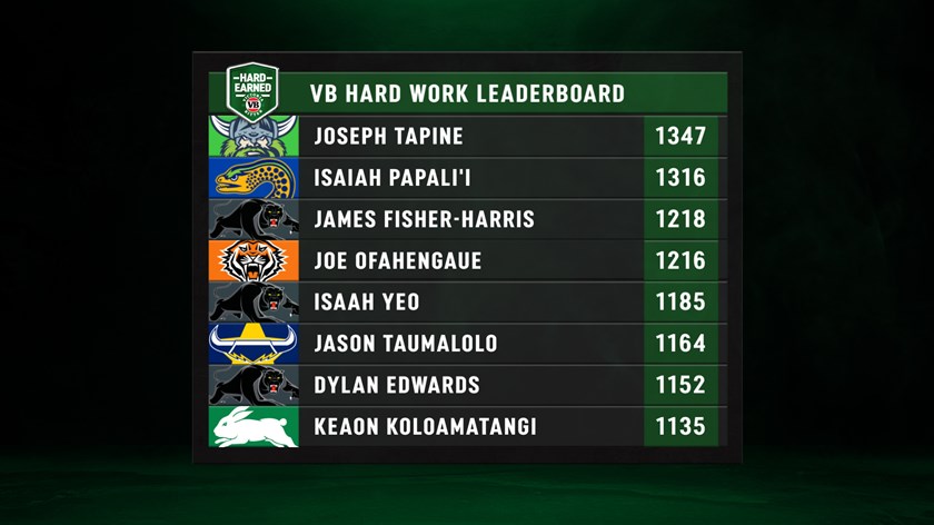 Papali'i was the round's Offload King with five from 14 carries, while his Raiders teammate Tapine stood out when it came to tackle busting, with six breaks from 17 runs in Canberra's comeback victory over the Warriors.