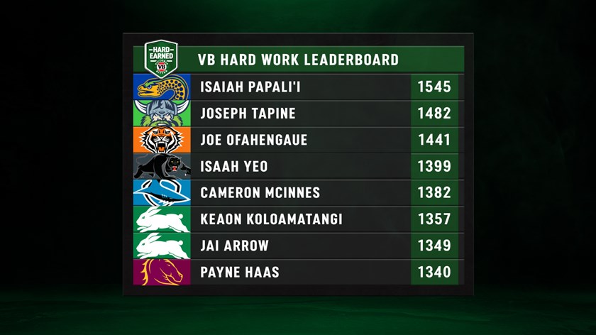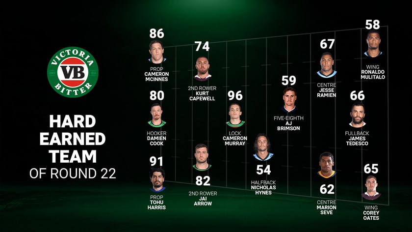 A tireless effort across his 73 minutes on the field last Friday saw Cameron Murray top the VB Hard Earned Index for round 22, as the South Sydney skipper helped his side to a 26-0 shutout of the Eels.