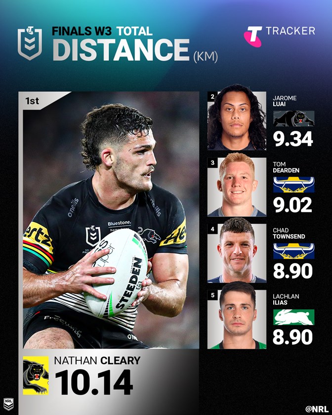 Panthers halfback Nathan Cleary clocked over 10 kilometres of running on the Telstra Tracker as he guided his side to a third-straight Grand Final appearance last Saturday.
