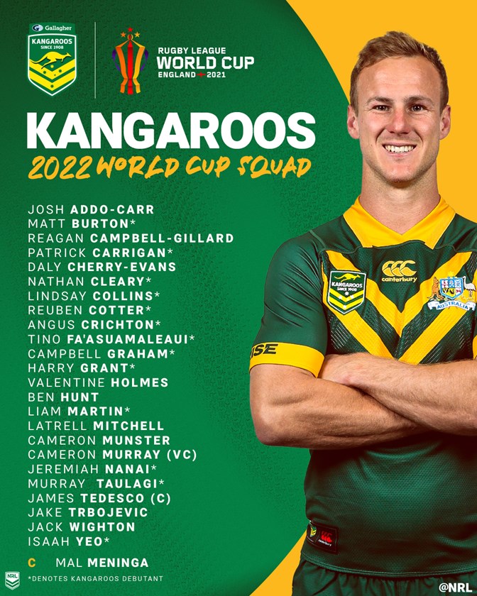 The Kangaroos leave on Thursday and face Fiji in their opening match of the World Cup on October 15 at Headingley.