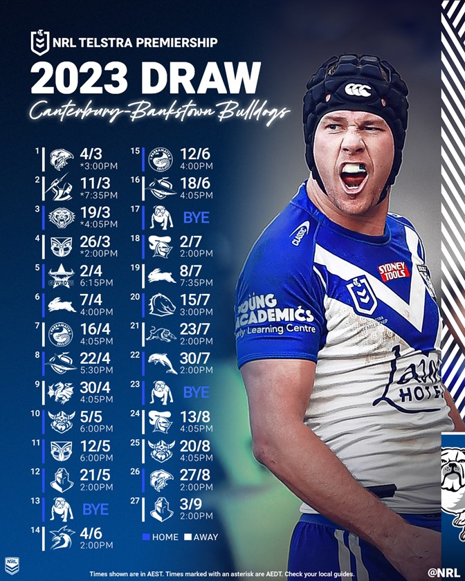 Here is all you need to know about the Canterbury Bulldogs 2023 Telstra Premiership draw.