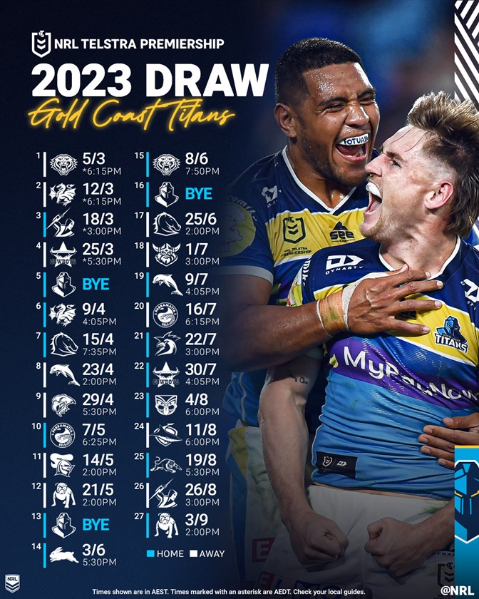 Here is all you need to know about the Gold Coast Titans 2023 Telstra Premiership draw.