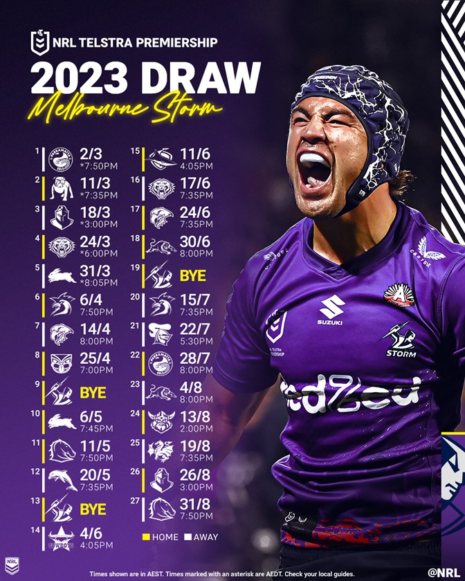 Here is all you need to know about the Melbourne Storm's 2023 Telstra Premiership draw.