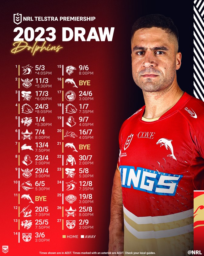 Here is all you need to know about the Dolphins 2023 Telstra Premiership draw.
