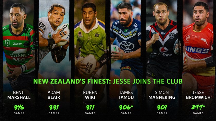 All will watch on proudly on Saturday as Bromwich notches his special milestone, along with a quintet of New Zealand’s finest in Benji Marshall, Adam Blair, Ruben Wiki, James Tamou and Simon Mannering, the only Kiwis to have played 300 NRL games.