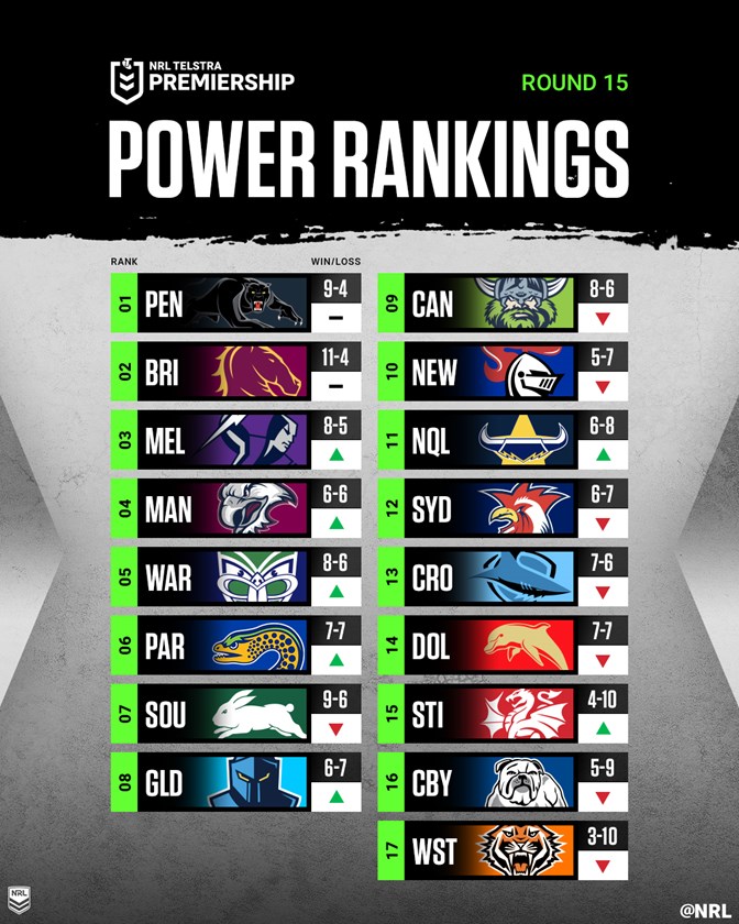 With byes starting to create some real gaps in momentum, there were a number of notable fallers in the round with the Sharks (down eight spots), Dolphins (down three spots) and the Raiders (down five spots) all dropping as a result of their defeats.