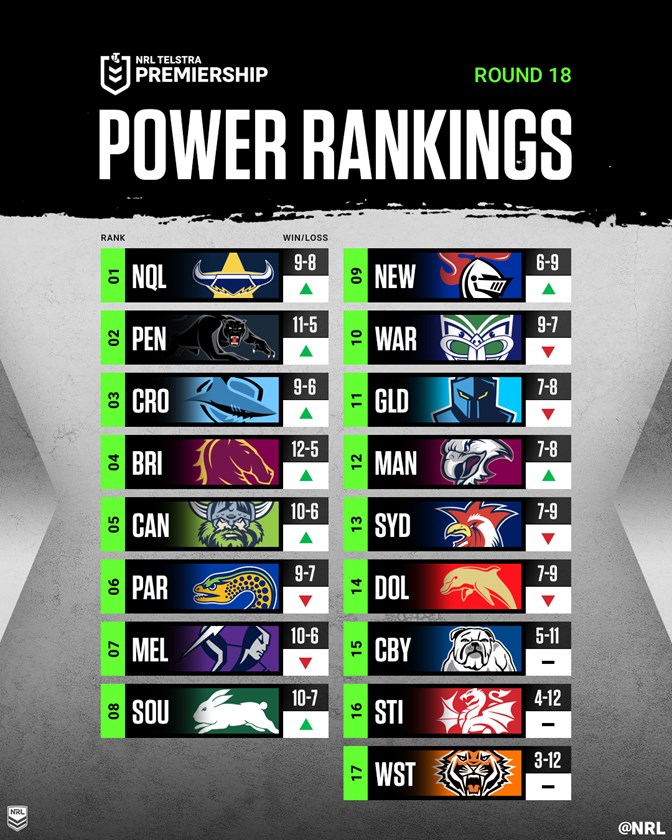 On the back of their 74-0 drubbing of the Wests Tigers in Round 18, the Cowboys have jumped seven places to assume top spot in the NRL Power Rankings this week.