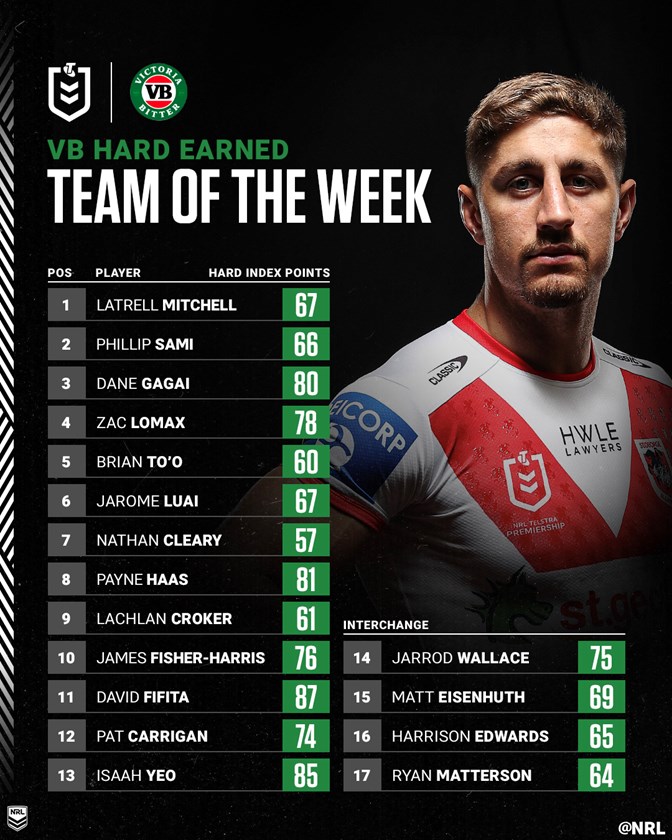 Latrell Mitchell (67 points) got the nod at fullback after returning for the Rabbitohs for his first game since Round 12 while Zac Lomax (78 points) was named at centre after putting his hand up for 21 runs, 17 over eight metres, four tackle busts and 17 tackles.