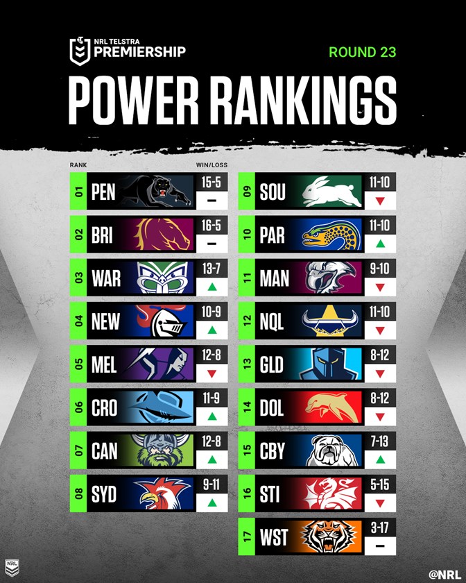 The Rabbitohs also took a hit in Roud 23, dropping three places into ninth position in the rankings after being on the wrong end of a Round 23 upset against the Sharks.