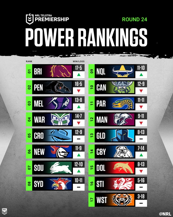Penrith have been sitting pretty atop of the rankings for five-straight weeks but the Broncos' biggest win of the season has paved the way for the Brisbane powerhouse to move back into top spot in the rankings with just three weeks left of the regular season.