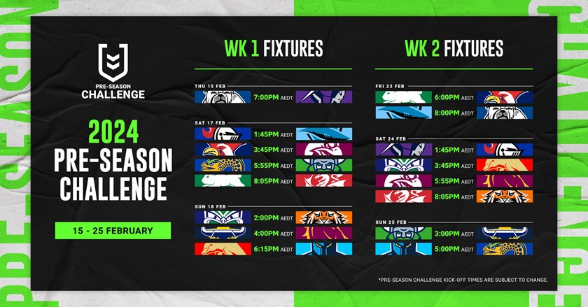 The NRL Pre-Season Challenge kicks off on February 15 and will feature 16 intense and intriguing clashes across two weekends of entertaining footy that sets the stage for the Telstra Premiership.