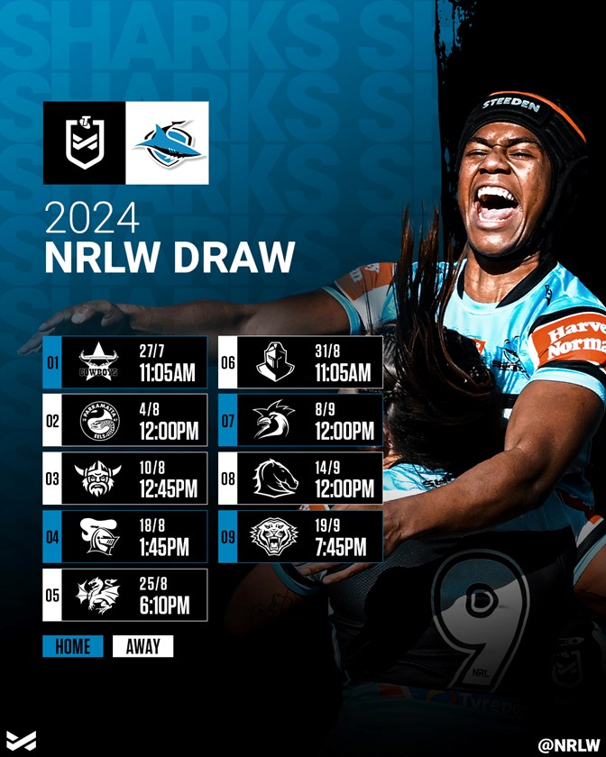 The Sharks will feature in five doubleheaders however only one of those will be at home when both the men and women host the Knights on August 18 (Round 4). The Cronulla side will enjoy another trip away with the NRL side when they head down south to meet with the Dragons in Round 5 to continue one of rugby league's oldest rivalries.
