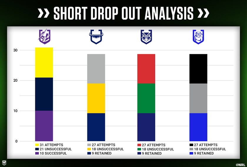 The Storm regained more short dropouts than any other team this year in 10, but were behind the Bulldogs, Cowboys and Warriors when it came to percentage after turning over possession on 21 attempts.