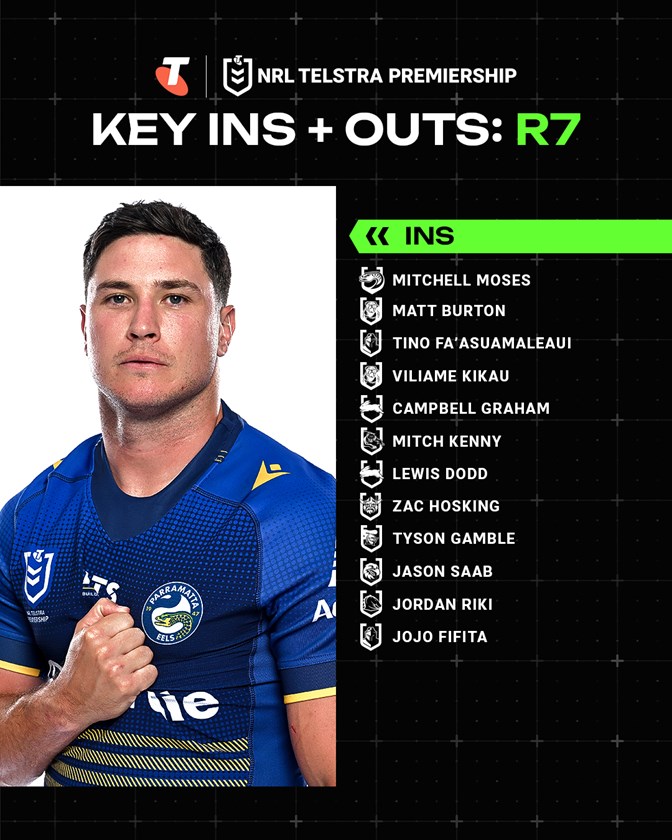 The five-eighth's absence comes as Parramatta welcome back their most influential player. Moses has battled a foot injury to start the year and the Eels have struggled without him.