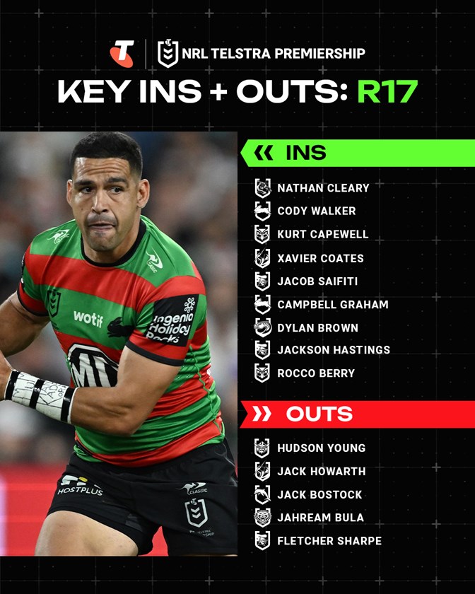 Cleary has been named at halfback, with Brian To'o, Dylan Edwards, Isaah Yeo and Liam Martin all slated to return for their club.
