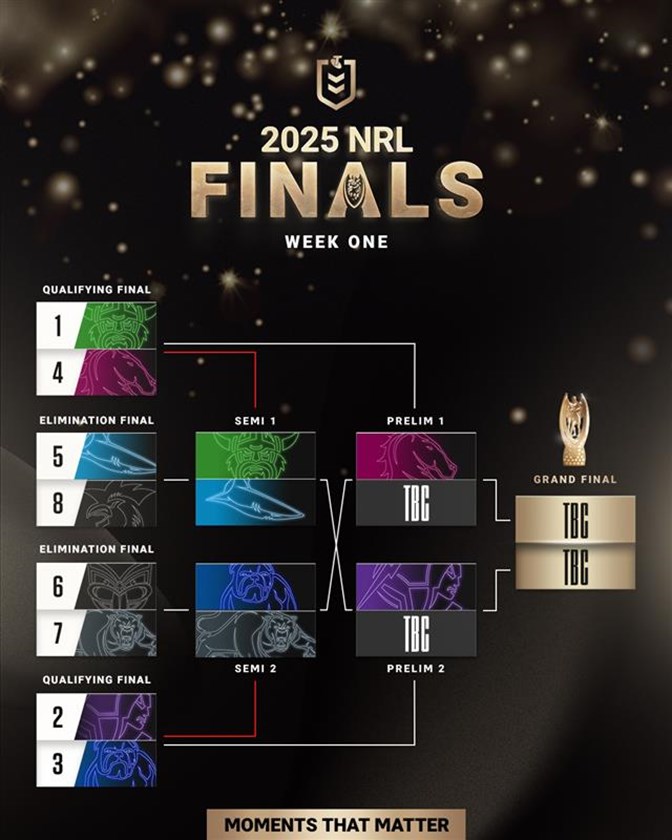 Finals specialists Melbourne and the Reece Walsh-inspired Broncos will put their feet up this weekend as the Bulldogs, Panthers, Sharks and Raiders fight for survival and the right to move into a preliminary final.