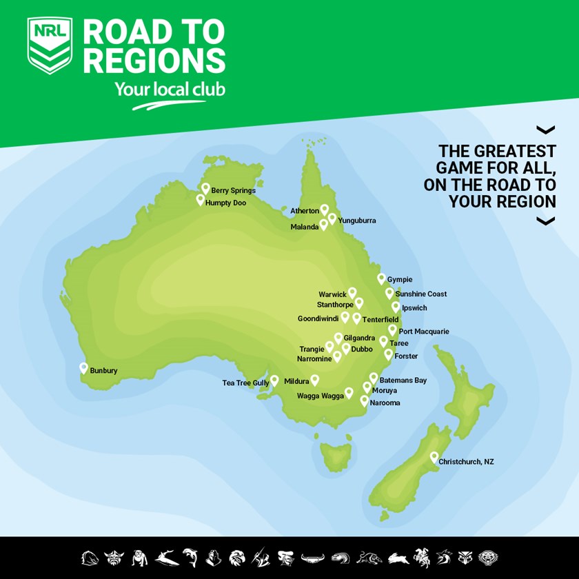 As part of the NRL’s commitment to the heartlands of our game, the 2024 NRL Road To Regions presented by will see former and current NRL and NRLW stars take part in a broad range of community visits throughout February and March, across Australia and New Zealand!