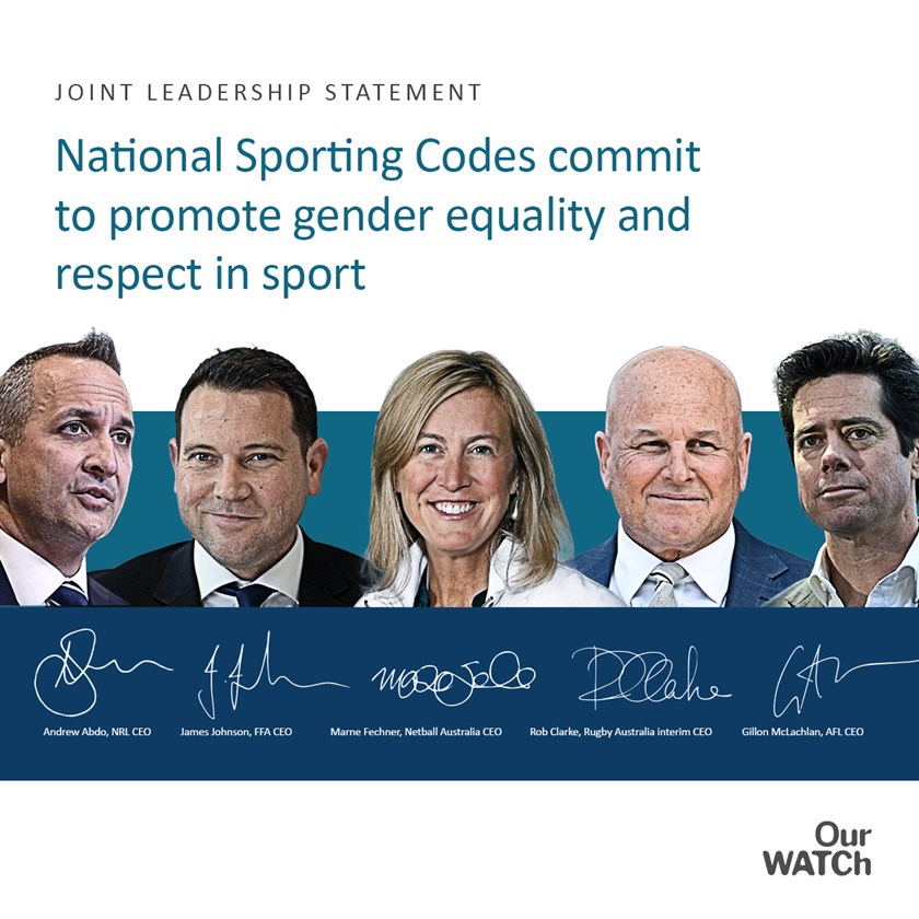 As the leaders of Australia's major national sporting organisations, we are committed to working together to continue to build equal and respectful organisations.