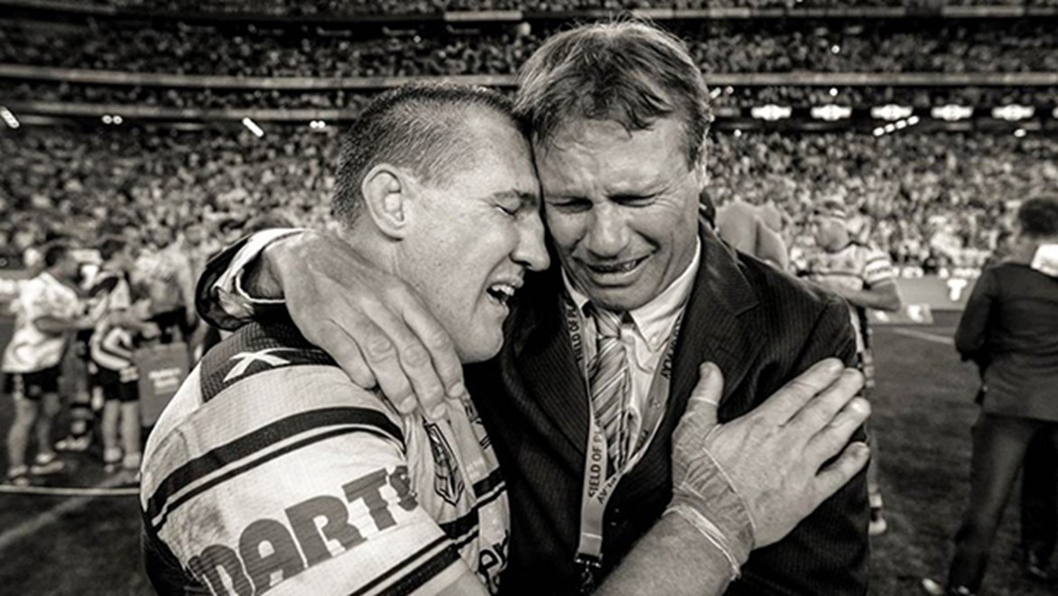 Trouville's iconic image '50 Years of Tears' showed Cronulla captain Paul Gallen and club legend Andrew Ettingshausen in an emotional embrace following the Sharks triumph – a thrilling 14-12 win over the Melbourne Storm.