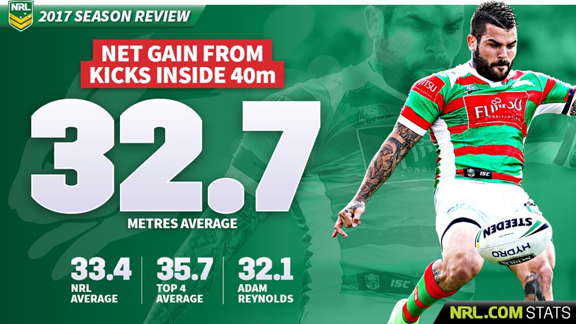 The fact Adam Reynolds was below the NRL average in this category is a shock. The former NSW halfback finished fourth in the NRL for total kicking metres.