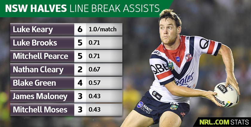 Besides leading the NRL for try assists per game and being one behind Gareth Widdop (nine) for the most, Keary is ranked equal second for line-break assists, with he and Trbojevic averaging one each per game, and is seventh for supporting runs (26.17 per game).