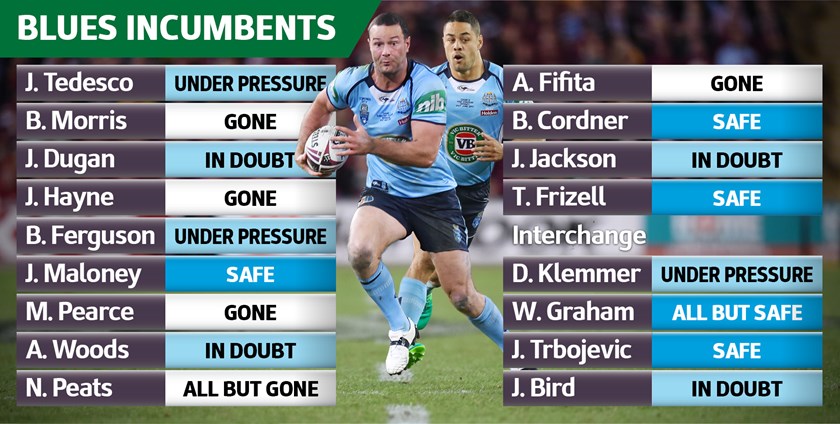 From the Blues team which lost the series-deciding third game of the 2017 Holden State of Origin series, only skipper Boyd Cordner, fellow back-rowers Tyson Frizell and Jake Trbojevic, and playmaker James Maloney can consider themselves safe from the selection axe.