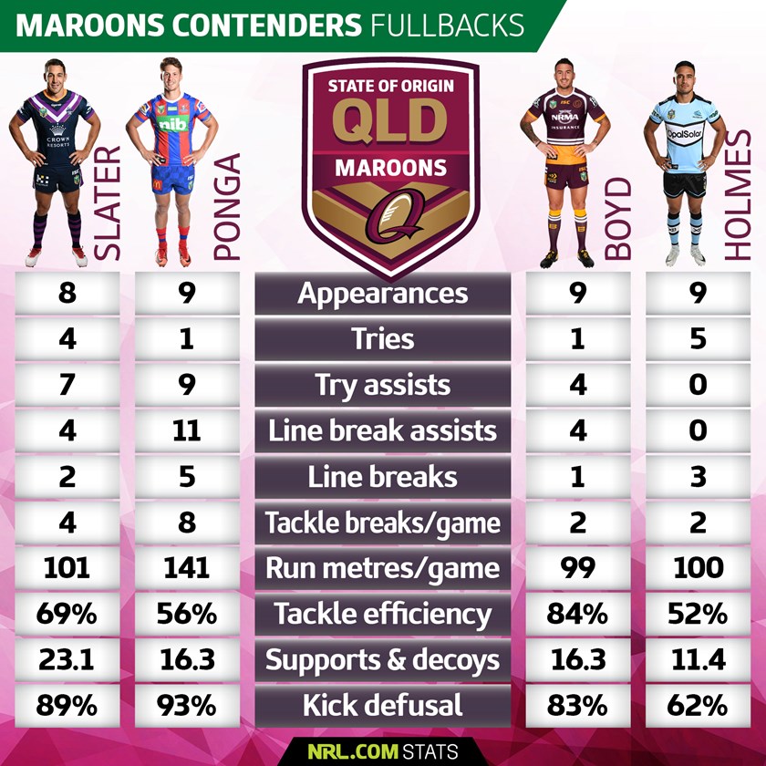 Ponga is the interesting one. He only recently turned 20 but statistically he absolutely laps the rest of the candidates. While he has just one try himself his nine try assists – two behind competition leader Gareth Widdop and two more than the next-best fullback in the NRL in Slater. His 11 line break assists are the most of any player in the NRL this year full stop – two clear of Widdop and Johnathan Thurston (nine each) while his 68 tackle busts is also the best of any player this year. He probably doesn't make the 17 for round one given the logjam of backs and halves but will be in the extended squad ahead of what is probably a 10-year-plus Origin career.