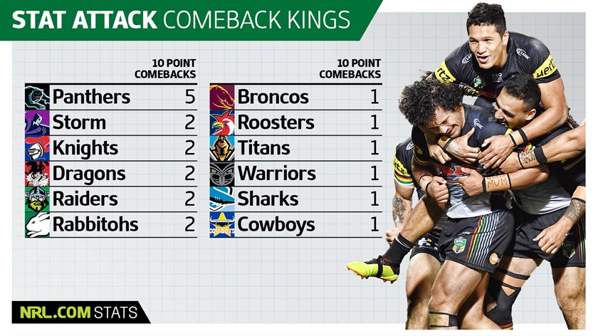 It puts them three clear of the Storm, Knights, Dragons and Raiders in terms of double-digit comebacks with each of those clubs overturning a deficit of 10 or more on two separate occasions this year.