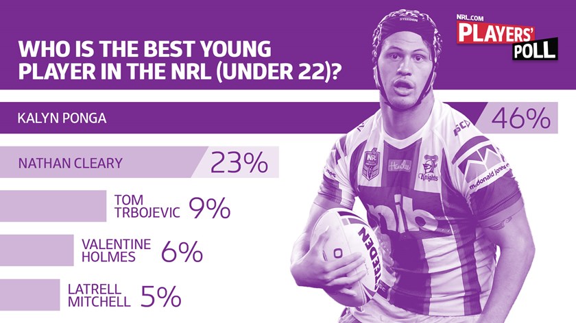 Also in part three of the poll, which was filled in by 117 players across all 16 clubs before this year's Origin series, Kalyn Ponga has unsurprisingly been deemed the best young player (22 and under) in the NRL ahead of NSW and Panthers halfback Nathan Cleary.