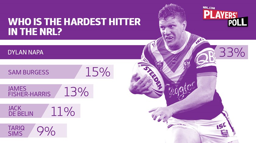 Sydney Roosters front-rower Dylan Napa was the overwhelming winner as the hardest hitter in the NRL, beating South Sydney's Sam Burgess.