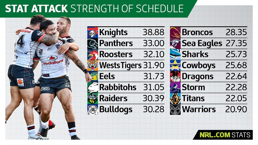 By that measure, the Warriors have the "easiest" draw, with fellow finals-bound clubs the Storm and Dragons also having good runs into September. Fresh from a win over the fourth-placed St George Illawarra, the Warriors have a golden chance to push for a home final or possibly even a top-four finish.