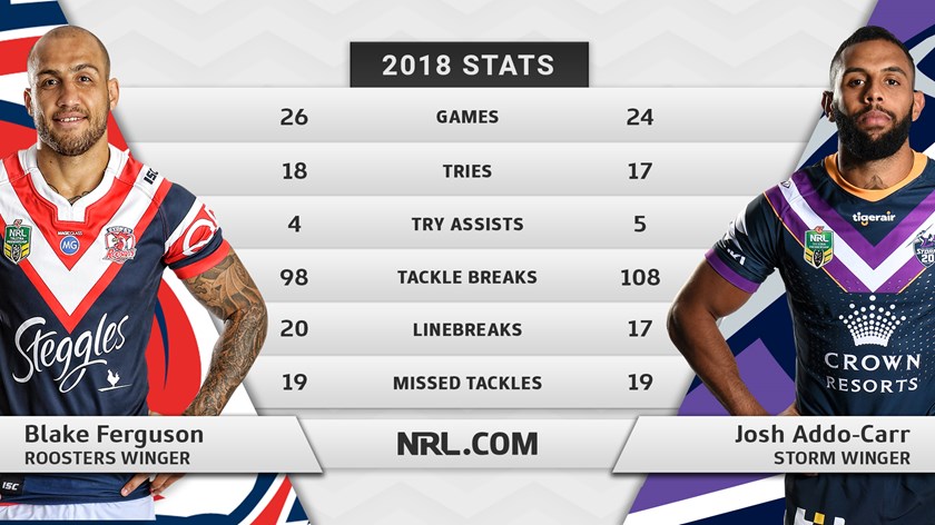 Melbourne Storm flyer Josh Addo-Carr will mark in-form Sydney Roosters winger Blake Ferguson in a battle for the ages with a tense contest expected.