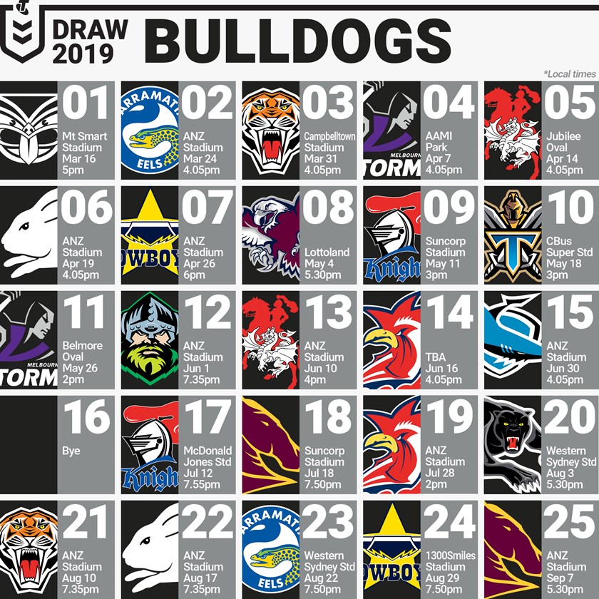 Here is all you need to know about the Canterbury Bulldogs' 2019 Telstra Premiership draw.