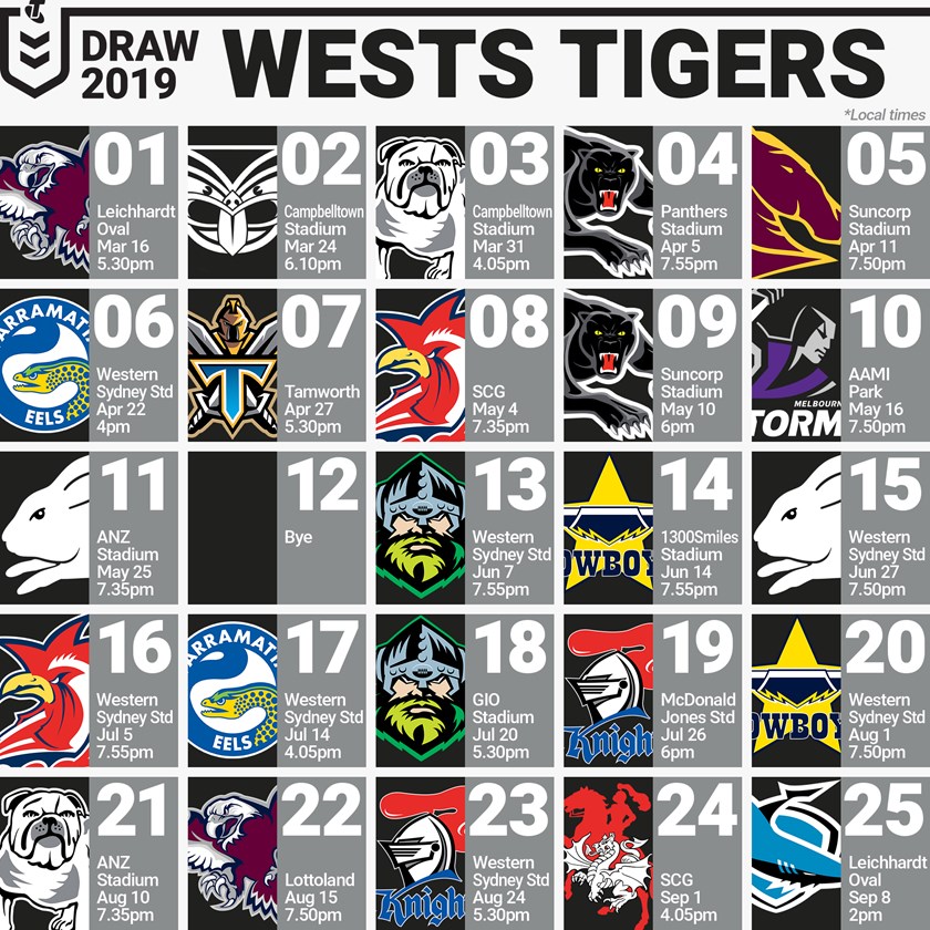 Here is all you need to know about the Wests Tigers 2019 Telstra Premiership draw.