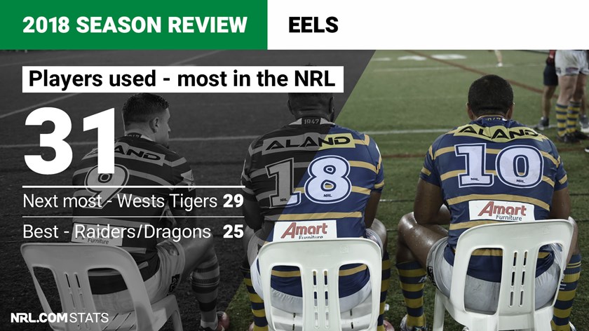 The Eels managed just under a 70% success rate converting tries, plus nine of 10 penalty goals kicked for an overall average of 72.4%, placing them second-last in the NRL. Back-up kicker Clint Gutherson kicked under 60% in 2018 while regular kicker Mitch Moses managed 78%. Their tally of 55 two-pointers was five behind Newcastle's 60 goals which was the second lowest.
