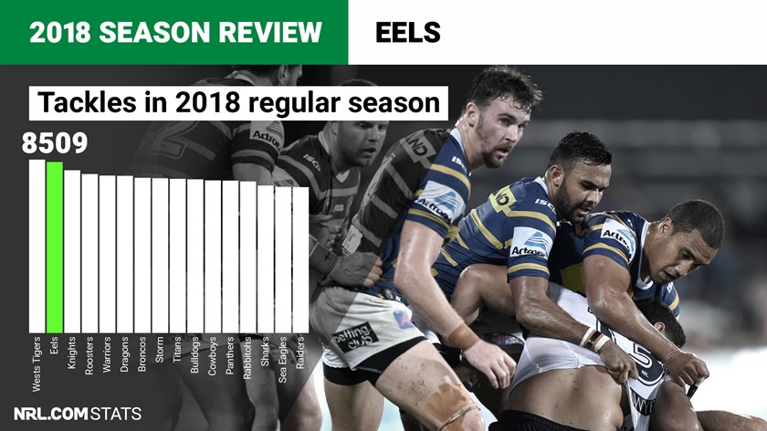 An inability to control possession hurt the Eels right through the season. The extra defence they were forced to do sapped them in attack and compounded other issues. The blue and golds won the possession count just seven times in 24 games, winning four of those (their other two wins they earned 49% possession). The Eels were eventually forced into making 8509 tackles, more than any team other than Wests Tigers (8622).