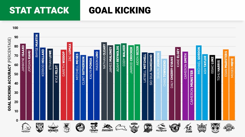 Michael Gordon is expected to resume the goal-kicking role with Ash Taylor proving a handy back-up option for the Titans, who have lost Kane Elgey to Manly. Gordon has hovered around the 78% strike rate mark in his past four seasons. The Titans are also boosted by the return of Tyrone Roberts, who kicked at 77% during his last stint at the club, though his spot is not as secure in the halves with Ryley Jack and AJ Brimson possible options.