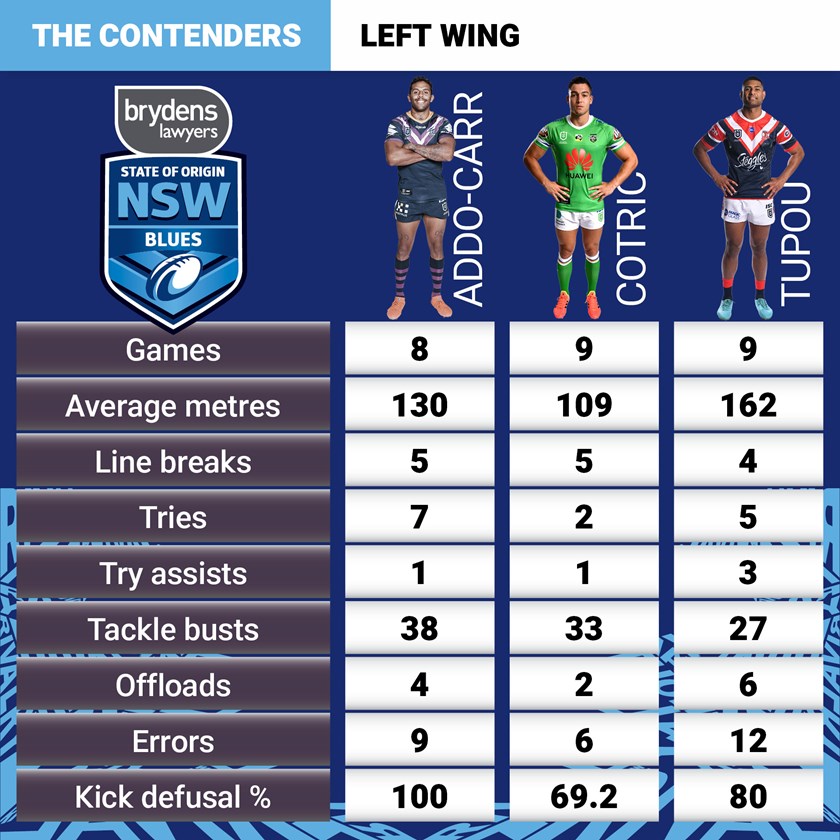 Candidates: Josh Addo-Carr, Nick Cotric, Daniel Tupou