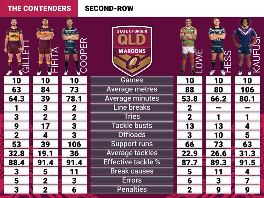 Kaufusi is an incumbent Maroon and Kangaroo and is a certain starter. Cooper was something of a late bloomer in Origin terms but has played six of seven games since he debuted in the final game of 2016 and performed admirably. Hess has played five straight Origins – all off the bench – since being called up in game two of 2017.