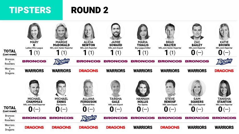Tarsha Gale says: The Roosters didn't live up to expectations last week and looked clunky in attack. If Simaima Taufa doesn't receive the support she needs from her forward pack the Broncos will be allowed dominate the middle. This will give Ali Brigginshaw the opportunity to do what she does best and orchestrate her team to another victory. Broncos by 8