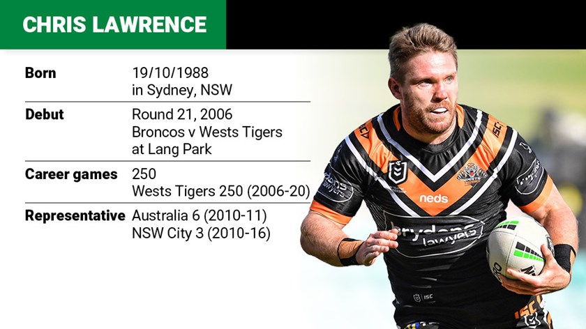 The suspension of the season due to COVID-19 led to Wests Tigers stalwart Chris Lawrence deciding to hang up his boots - but not because he lost his passion for the game.
