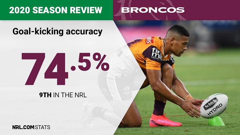 Brisbane were the ninth-best goal-kicking team in the league according to the percentages, with Kotoni Staggs replacing Jamayne Isaako's as the team's sharpshooter midway through the season.