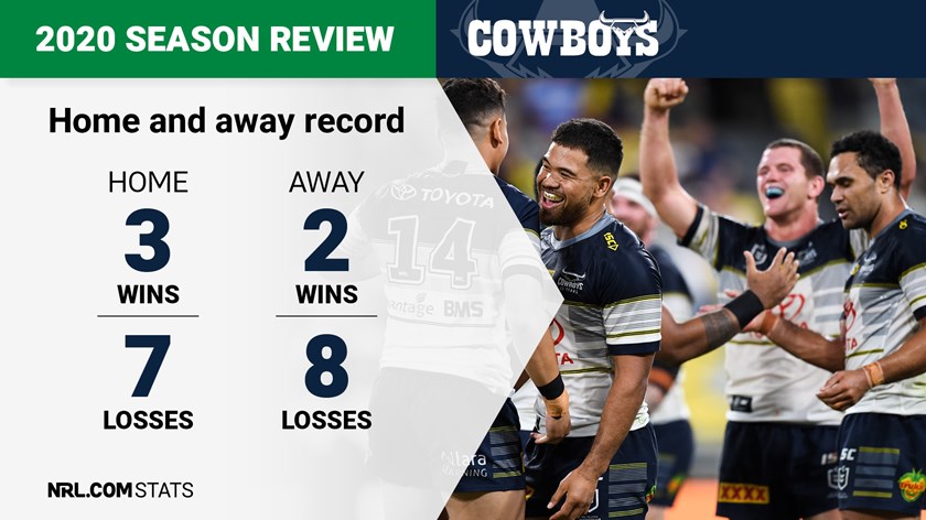 The new, state-of-the-art Queensland Country Bank Stadium wasn't quite the fortress the Cowboys hoped it would be. They only won three games at their new base - the equal third-worst result.