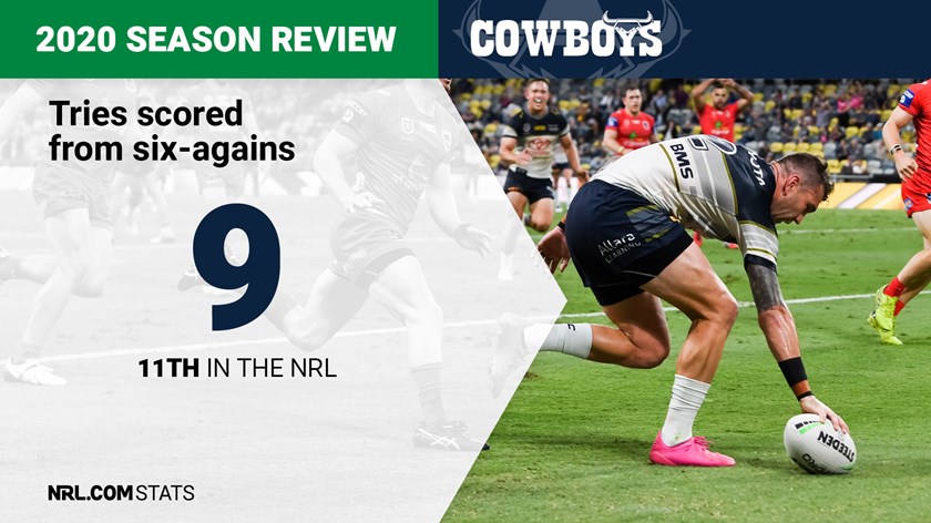 The Cowboys were middling when it came to capitalising on ruck infringements, scoring nine tries off the back of six-again calls to rank equal 11th.