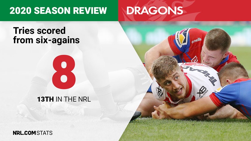 With eight tries from six-again ruck infringements, the Dragons ranked 13th, besting the Bulldogs (7), Titans (4) and Broncos (4).