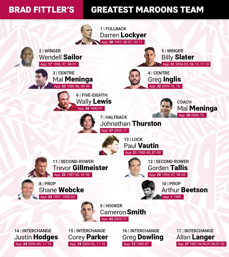 Besides the man himself, Fittler was the only one not to select Billy Slater at fullback. Instead, he opted for Darren Lockyer in the No.1 and Slater on the wing. The NSW coach included Justin Hodges on his bench.