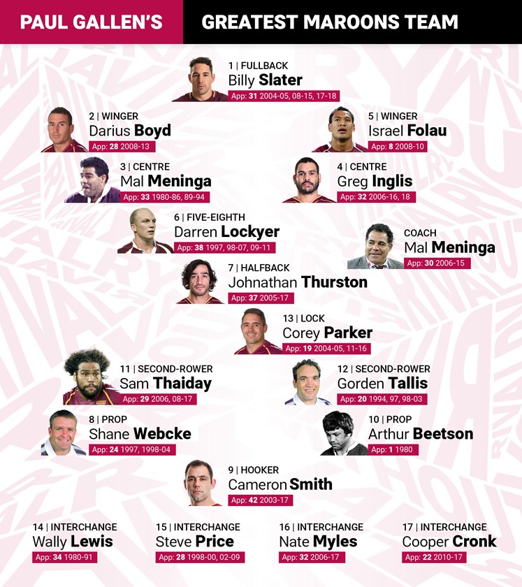 The names Slater, Thurston, Smith, Cronk, Boyd, Inglis, Thaiday, Parker and Myles may have caused long-time NSW skipper Gallen nightmares during their golden run - but he found space for all of them.