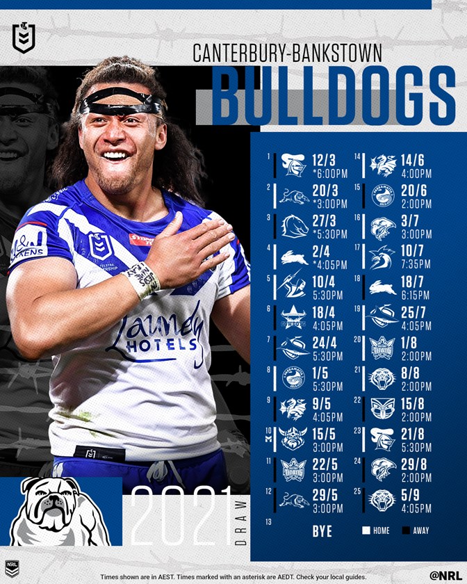 Here is all you need to know about the Canterbury Bulldogs' 2021 Telstra Premiership draw.