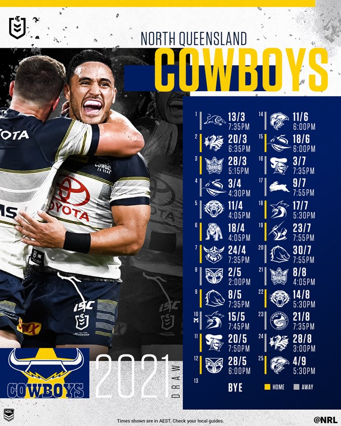 Here is all you need to know about the North Queensland Cowboys' 2021 Telstra Premiership draw.
